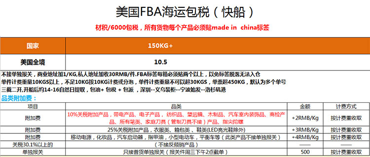 2.單件貨物平均計(jì)費(fèi)重量要求12KG以上,單件不足12KG加收50RMB/件,單件重量不超過(guò)30Kg。