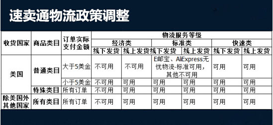 據(jù)最新消息,速賣通將于今年7月1日采用新的物流方案發(fā)貨政策,該政策明確規(guī)定除特殊類目商品外速賣通賣家均不允許使用線下經(jīng)濟(jì)類物流(即無追蹤平郵)。