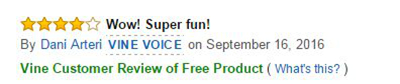 這種評價將顯示“Vine Customer Review Of Free Product”的字樣,如下圖所示: