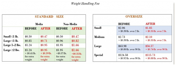據(jù)了解,亞馬遜10月的倉儲費(fèi)降低,但11月和12月費(fèi)用將提高,為了抵消一部分影響,11-12月稱重處理費(fèi)將降低。