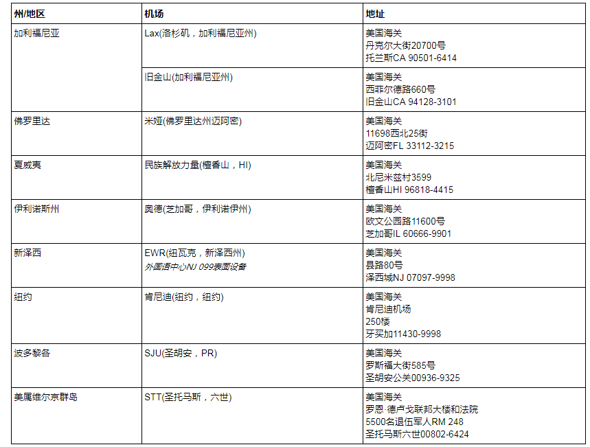 來自美國(guó)海關(guān)領(lǐng)土以外(即50個(gè)州、哥倫比亞特區(qū)和波多黎各以外)的所有郵件均須接受海關(guān)檢查,但下列郵件除外: