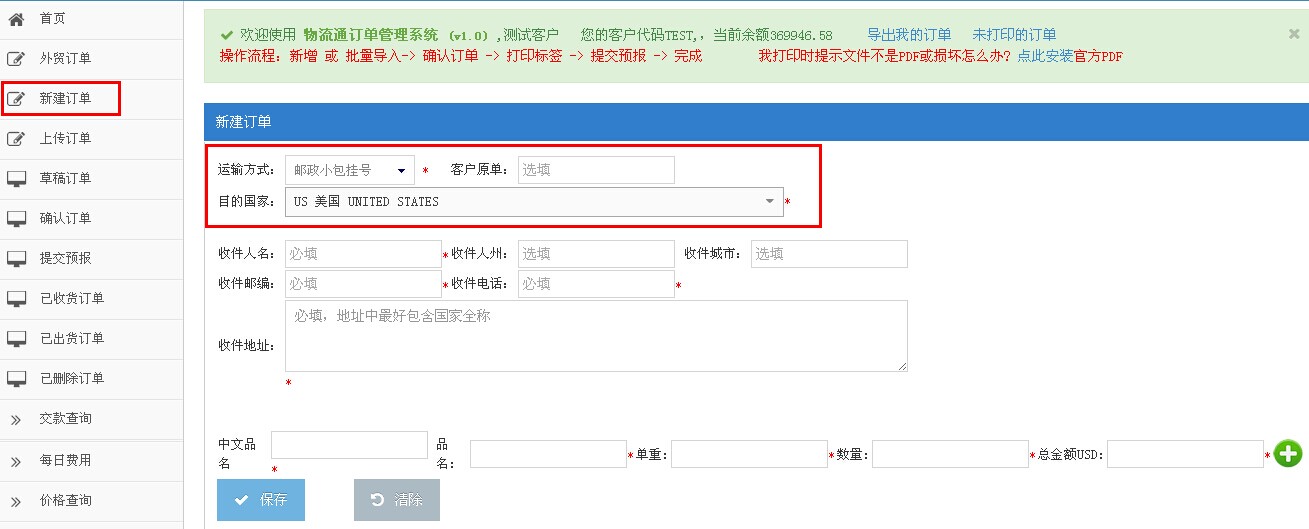 點擊“新建訂單”進入“新建訂單”頁面,可以進行單一訂單創(chuàng)建。