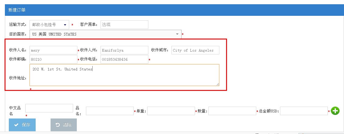 2.e郵寶,e特快,e包裹有郵編的國家必須正確填寫,如美國郵編必須是5位數(shù)字或五位數(shù)字-三位數(shù)字;